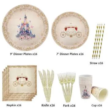 What sets the AIBIIN Princess Party Plates apart from similar products is not only its attractive design but also its commitment to quality and convenience. While many disposable party plates lack strength and style, our high-quality materials ensure both durability and the magical look that every princess deserves. Other products may offer a few pieces but fall short in providing a comprehensive service for 16 guests, making this set a prime choice for a complete party experience.