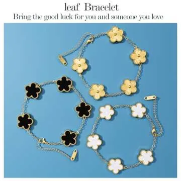 AICase 18K Gold Plated Clover Bracelet Dupes Gold/White/Black Bracelet Set for Women Flower Leaf Lucky Clover Bracelets Trendy Jewelry Birthday Gifts for Women/Mon/Friends
