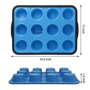 Show more Introducing the Aichoof Non-Stick Silicone Muffin Pan, a baking essential designed for both amateur bakers and seasoned professionals. This 12-cup muffin tin is crafted from 100% pure silicone, ensuring a non-stick surface that allows your delightful creations to slide right out without any mess. Our muffin pan isn’t just practical; it’s BPA-free and made from food-grade materials which guarantee safe food handling. The innovative stainless steel frame integrated within the silicone structure provides unbeatable support and stability, ensuring your muffins take form perfectly while you bake.