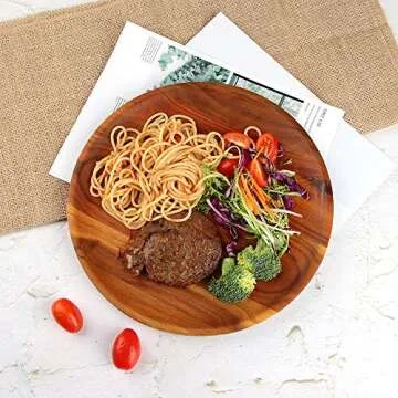 AIDEA Acacia Wood Dinner Plates, 11Inch Round Wood Plates Set of 4, Easy Cleaning & Lightweight for Dishes Snack, Dessert, Unbreakable Classic Plate