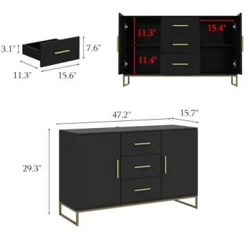 Show more Introducing the AIEGLE Aparador buffet cabinet, your ultimate storage solution that marries functionality with elegance. This stunning piece features sufficient storage space with two-tier shelves behind each door, ideal for accommodating your diningware, tableware, books, or media accessories. Its full-sized drawers allow you to neatly store items that you rarely use, keeping your living space clutter-free.
