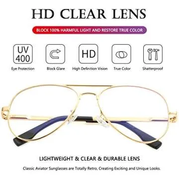 Introducing the AIEYEZO Classic Aviator Polarized Sunglasses, where style meets functionality! These superior sunglasses not only enhance your look but also protect your eyes with impressive UV400 protection. Designed for both men and women, they feature clear transparent lenses that absorb 99% of visible light while blocking out most blue light, ensuring an unparalleled true color experience. You can now enjoy crisp visuals and a more "natural vision" everywhere...