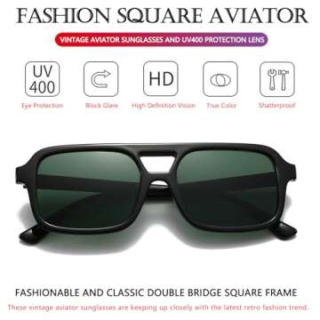 AIEYEZO Retro Square Sunglasses for Women Men Trendy Rectangle Aviator Sun Glasses Vintage 70s Shades (Black/G15)