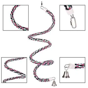 Aigou® Bird Spiral Rope Perch, Cotton Parrot Swing Climbing Standing Toys with Bell (Medium - 65 inch)