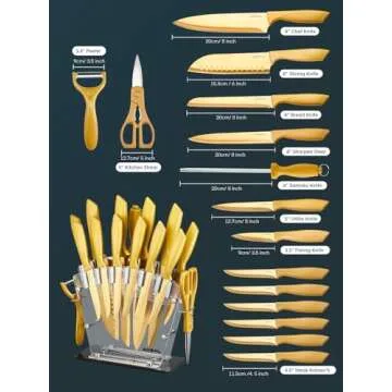 Aiheal Knife Set, 16 Pieces High Carbon Stainless Steel Golden Color Kitchen Knife Set, Titanium Coating Blade, No Rust and Super Sharp Cutlery Knife Set with Acrylic Stand and Kitchen Scissors, Gift