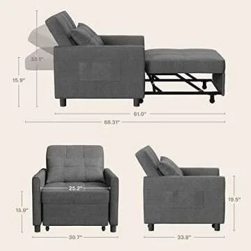 Aiho Convertible Sleeper Chair with Pillow & Pocket, 3-in-1 Sofa Bed in Modern Linen Fabric for Apartment, Dark Gray