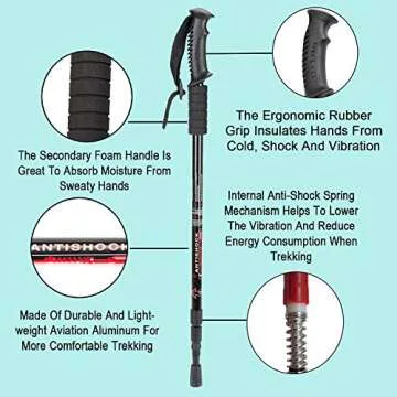 Aihoye Trekking Poles, Collapsible Lightweight Shock-Absorbent Hiking Walking Sticks Adjustable Aluminum Hiking Poles for Women Men Kids, 2 Pack (Black)