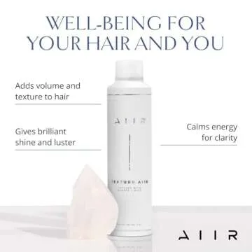 In a market flooded with styling products, the AIIR Texture Styling Spray stands out due to its unique formulation devoid of harmful chemicals like parabens and sulfates. While other sprays might offer hold or texture, they often come with sticky residues or stiffness. AIIR prioritizes a natural, healthy look while enhancing the user experience with benefits like mind-cleansing properties of Crystal Quartz. This commitment to clean beauty and holistic wellness makes AIIR a powerful alternative in the styling spray niche.