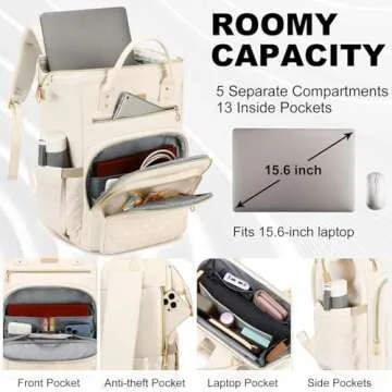 Stylish Aijieke Leather Laptop Backpack with Insulated Lunch Bag for Women