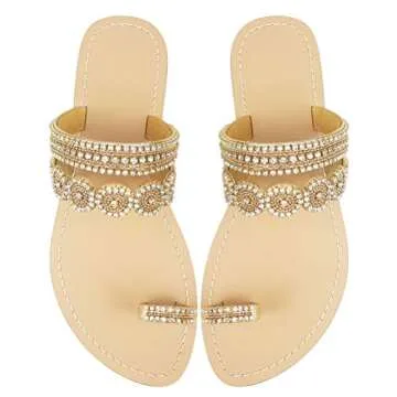 AIJIVOU Mayou Flat Sandals for Women Flip Flops with Clip Toe Ring Rhinestone Crystal Jeweled Sandal Shoes for Summer Beach Oceanside Holiday Outdoor (6 M US, Gold)