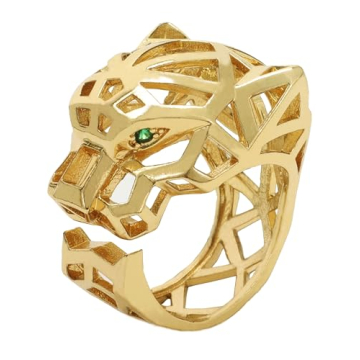 AIKAITUO 14K Gold Open 3D Mesh Leopard Head Ring & Stylish Personalised Ladies Jewellery Holiday Gifts