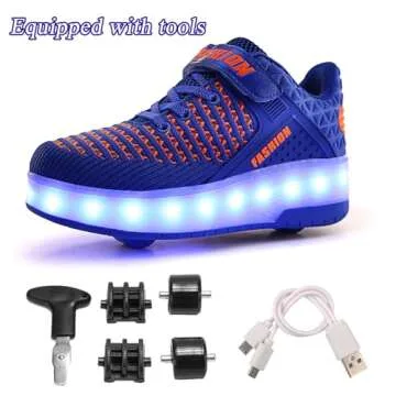 Aikuass Kids Roller Shoes - LED Flash Sneakers with Hidden Wheels