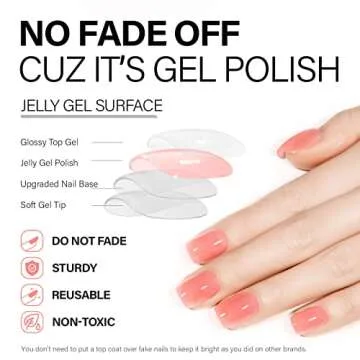 AILLSA Press on Nails Short - Square Shape Fake Nails Made by Soft Gel Lightweight & Comfortable Reusable, Glue on Nails Short 15Sizes 30Pcs Gel Nail Kit with Glue, Sweet Peach