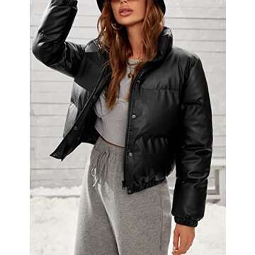 Show moreIntroducing the Ailoqing Faux Leather Puffer Jacket, a stylish and functional winter outerwear option designed specifically for women who want to stay warm without compromising on fashion. This zip-up jacket boasts a contemporary bubble coat design made from high-quality faux leather, ensuring not only a sleek aesthetic but also durability to withstand chilly winter conditions. With its stand collar, it provides excellent neck coverage, while its insulated inner material keeps warmth locked in, making it perfect for those frosty days.