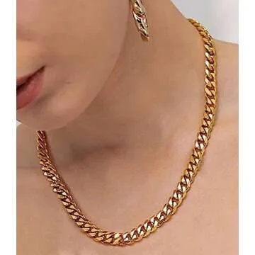 AILPIWE Cuban Link Chain Necklace for Men, 18K Gold Plated Chain for Men Women, Diamond-Cut Miami Cuban Link Chain Necklace | 316L Stainless Steel, 9mm Width 20 Inches