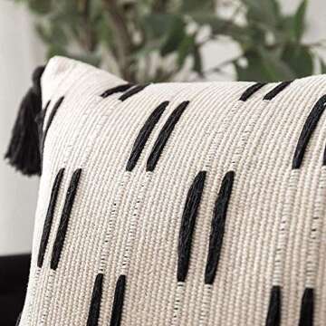 Show moreAdd a touch of elegance to your living space with the Ailsan Boho Beige Decorative Throw Pillow Cover. Measuring 12"x20", this exquisite cushion cover is designed to elevate your home decor with its modern stripe pattern and charming tassels. Made from high-quality soft cotton, this woven pillow case not only enhances your sofa or bedroom aesthetics but brings a cozy feel that invites relaxation. The neutral beige color complements any décor style, making it a versatile addition to your living room, couch, or bedroom.