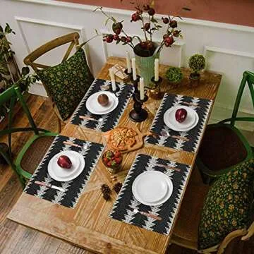 Show moreIntroducing the Ailsan Farmhouse Placemats Set of 4, a delightful addition to your dining aesthetics that blends functionality with chic design. Measuring 14x19 inches, these boho black and white woven placemats are not only visually stunning but are crafted from premium quality fabric that ensures durability and longevity. Their unique design mimics delicate Christmas trees, seamlessly bridging traditional elegance with a modern twist. Perfect for a variety of occasions, from festive gatherings to intimate dinners, these placemats will transform your meal setup into a stylish centerpiece that is sure to impress.