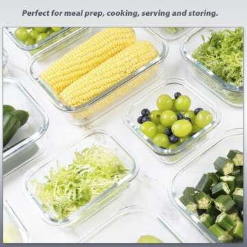 Show moreTransform your kitchen organization and meal prep experience with the AILTEC 12 Pack Glass Food Storage Containers with Lids. This all-encompassing set includes 12 high-quality containers, ensuring you have the perfect size for any meal—from hearty casseroles to delicate salads. Crafted from durable high-borosilicate glass, these containers are designed to withstand extreme temperatures, making them safe for use in the microwave and oven. Each container features an innovative air-tight hinge lid that seals securely, preventing leaks and preserving the freshness of your food. Enjoy the peace of mind that comes with knowing your meals are stored safely, whether you're at home or on the go.