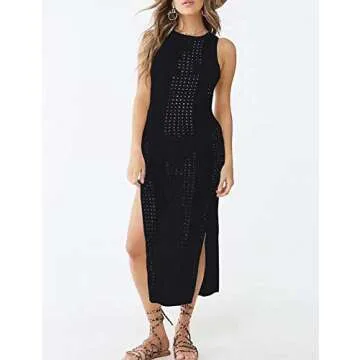 Show moreIntroducing the AILUNSNIKA Black Bathing Suit Cover Up Crochet Beach Dress, a quintessential piece for your summer wardrobe. Designed for modern fashionistas, this stunning cover-up features a chic crochet finish, enhancing your beach or poolside ensemble with its elegant hollow-out details and alluring side slits. Measuring 48.03 inches in length and designed to fit US sizes S to L, this lightweight and comfortable dress is crafted with the highest quality materials, ensuring both style and durability while you enjoy your day in the sun.