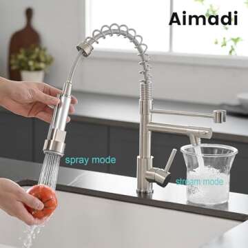 One of the standout features of this faucet is the 360-degree spout rotation, enabling you to reach every corner of your sink with ease. Enjoy two different spray modes—stream and spray—giving you the flexibility to tackle any kitchen task. Whether rinsing vegetables or washing dishes, the Spring faucet ensures you have the right flow at your fingertips.