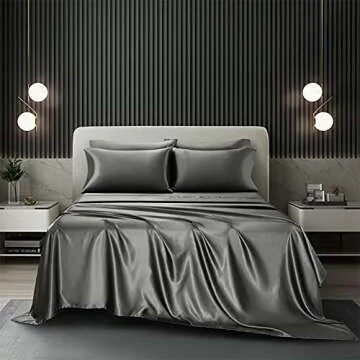 AiMay 6 Piece Satin Bedding Sheet Set King Grey Deep Pocket 1800 Series Luxury Rich Silk Silky Super Soft Solid Color 4 Pillowcases Reversible Sexy Honeymoon Wrinkle Free (King,Grey)