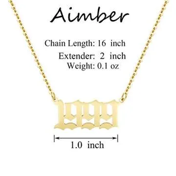 Aimber Birth Year Necklace 18K Gold Plated Birth Year Number Pendant Necklace Stainless Steel Birthday Year Necklace for Women,1970-2024(1999)