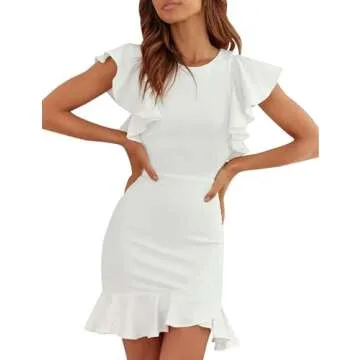 Show moreIntroducing the AIMCOO Women's Summer Flutter Sleeves Mini Dress, a perfect blend of elegance and comfort tailored for the modern woman. This stunning dress features a chic crewneck design and delightful flutter sleeves, enhancing your silhouette with a touch of sophistication. The ruffle hem adds a casual charm while maintaining an elevated look, making it ideal for various occasions. The solid white color is versatile and timeless, allowing you to pair it effortlessly with your favorite accessories and footwear. Crafted with high-quality materials, this bodycon dress offers a flattering fit, celebrating femininity with grace and style.