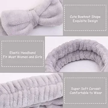 Show more This exquisite Spa Headband is designed for both comfort and style. Made from soft durable microfiber coral fleece, it offers a delightful texture that is not only plush but also practical. The fabric is washable and reusable, ensuring that it maintains its fluffy feel after washing, allowing for a sustainable beauty routine. The headband features an adorable removable bowknot at the top, adding a playful touch to your skincare or makeup regimen. Available in classic colors such as black and gray, it is perfect for anyone looking to embrace their beauty ritual with style.