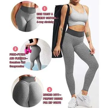 AIMILIA Women's Ruched Butt Lifting Leggings High Waisted Yoga Pants Tummy Control Workout Textured Booty Tights Gray