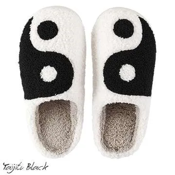 AIMINUO Women's Men's Retro Taijitu Slippers Comfy Warm Plush Slip-On House Slipper for Winter Indoor Soft Cushion Non-slip Fluffy Slides Slippers Black 7.5-8.5 Women/7-8 Men