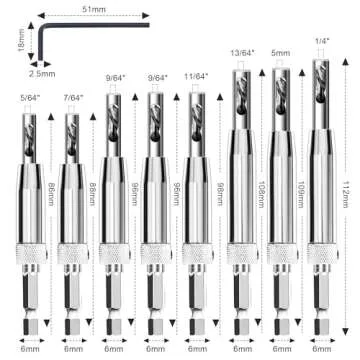 Each drill bit features an automatic centering function that guarantees perfect placement every time. The double-hole design rapidly discharges sawdust, keeping your work area clean and preventing any blockages. Included in this comprehensive set are 8 different self-centering hinge drill bit sizes and a hex key for easy adjustments. You also receive 8 replacement drill bits, ensuring that you'll always have what you need at your fingertips to tackle any woodworking task.