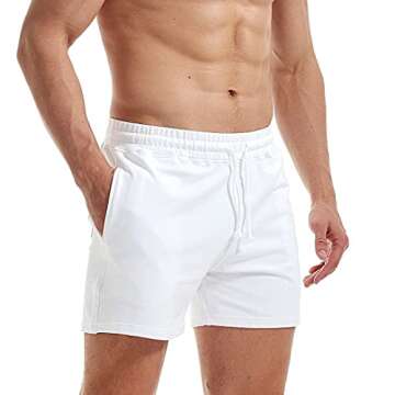 AIMPACT Mens Short Athletic Running Sweat Shorts 5 Inch Inseam Cotton Soft Lounge Jogging Workout Gym Casual Shorts with Pockets (White S)