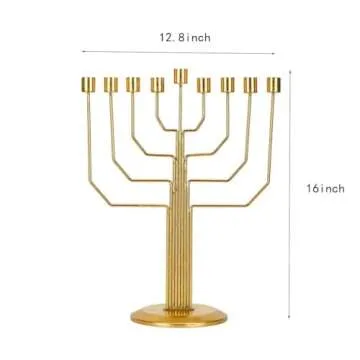 AimtoHome Hanukkah Menorah, Jerusalem Temple Jewish Candle Holder (16 inch, Gold)