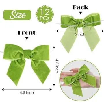 AIMUDI Apple Green Velvet Bows 4.5" Green Velvet Easter Bows Premade Bows Green Twist Tie Bows for Wreaths, Gift Basket, Spring Holiday Decor, Gift Wrapping, Swag, Wedding Decor - 12 PCs