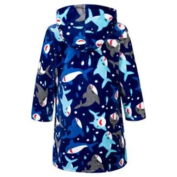 AINIBAB Boys Girls Robe Toddler Hooded Shark Plush Bathrobe for Boys Girls (Blue shark, 4-5T)