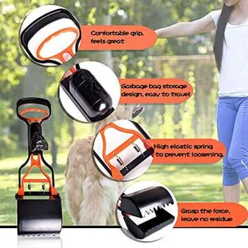 AINOLWAY 17 Inches Dog Pooper Scooper with Pet Poop Bags Long Handle Durable Jaw Clamp Scoop Waste Pick Up Easy to Use for Dog or Cats