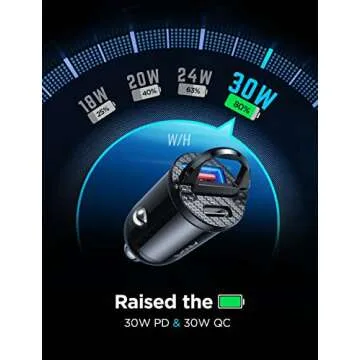 Show more Introducing the AINOPE Fast Car Charger, a true marvel of convenience and efficiency in car charging technology. This innovative charger, dimensions at a miniature 1.71 inches by 0.85 inches, seamlessly integrates into your vehicle's cigarette lighter, providing an aesthetic appeal without compromising on performance. Imagine charging your iPhone 15 or Samsung S20 from near zero to significant battery life in astonishingly short time frames—only 30 minutes to reach 85% for iPhones and a full hour for Samsung devices!