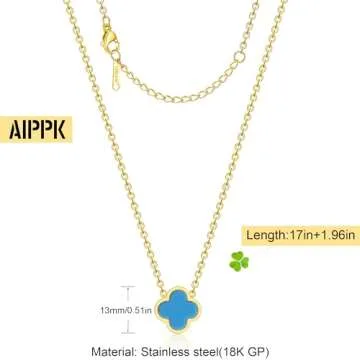 AIPPK 18K Gold Plated Clover Necklace for Women Blue Van Cleef Necklace Dupes Four Leaf Clover Lucky Necklace Pendant Dainty Jewelry Gifts