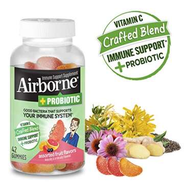 Airborne Vitamin C 750mg (per serving) - Plus Probiotic Gummies (42 count in a bottle), Gluten-Free Immune Support Supplement With Vitamins A C E, Selenium, Echinacea, Ginger, Antioxidants