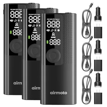 Show moreIntroducing the Airmoto Portable Tire Inflator, the ultimate solution to all your tire inflation needs. Designed with precision and convenience in mind, this high-quality product comes from a trusted brand known for its commitment to excellence. The Airmoto is not just a tire pump; it’s a smart, efficient device that can inflate tires of cars, trucks, SUVs, motorcycles, and bicycles in mere minutes with accuracy up to 120 PSI. Compact and lightweight, it fits perfectly into your glove box or trunk, ensuring you're always prepared for unexpected flat tires.
