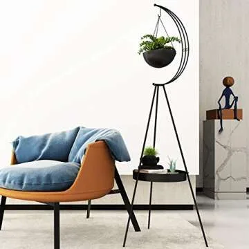 Airogym Plant Stand with Hanging Planters - Modern Iron Flower Display Shelf
