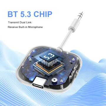 Airplane Bluetooth 5.3 Audio Transmitter Receiver,Supports 2 AirPods or Headphones with All 3.5mm Aux Jacks on Airplanes, Gym Equipment, TVs, & Gaming Consoles