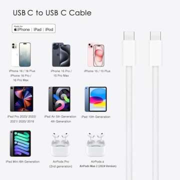 Airpods Pro 2nd Gen Charger, 20W USB C New Airpods 4 Charging Cord, USB C to USB C Woven Cable for AirPods Max 2 (2024), AirPods Pro (2nd Gen) Wireless Earbuds,iPhone 15/16 Charging Cord Power Adapter