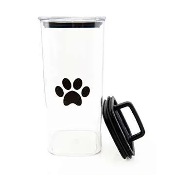 Airscape Pet Lite Plastic Dry Food Storage Canister - Patented Airtight Lid Preserves Dog and Cat Food Freshness, Clear Treat Container Paw Print (Large)