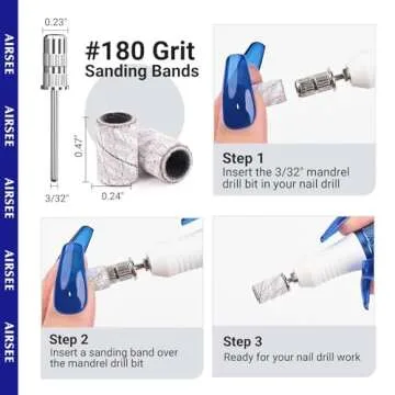 Show more Introducing the AIRSEE Sanding Bands for Electric Nail Drill - the ultimate toolkit for nail enthusiasts! This 100-piece set features #180 grit sanding bands that are meticulously designed to streamline your nail care routine, whether it's for natural nails or artificial ones. The grit is universally recognized as the gold standard for effortless shaping and preparing nails, as well as effectively removing gel polish, ensuring a smooth and flawless finish every time.