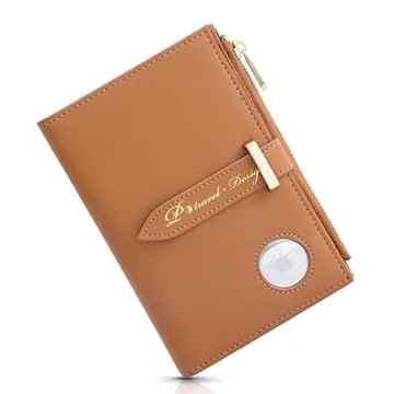 Airtag Passport Wallet for Women, RFID Blocking Passport Holder with Credit Card Holder, Brown