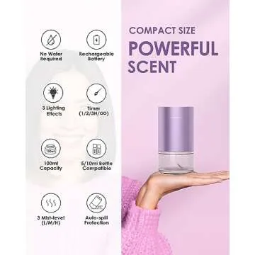 Airversa Waterless Diffuser Essential Oil 100ml Capacity Battery Operated Aromatherapy Nebulizer Premium Metal Scent Air Machine for Home 3 Mist Settings Timers Color Light Lavender