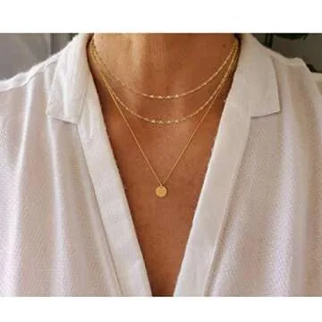 Aisansty Dainty Layered Choker Necklace Handmade Bar Chain Coin Pendant Adjustable Gold Plated Layering Necklaces for Women