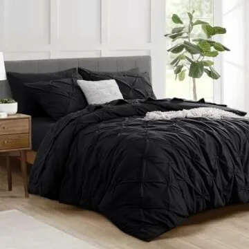 Aisbo Pintuck Comforter Set Queen - Black Pinch Pleated 3-Pieces Comforter Set Soft and Lightweight, All Season Down Alternative Comforter for Queen Size Bed with 2 Pillow Shams