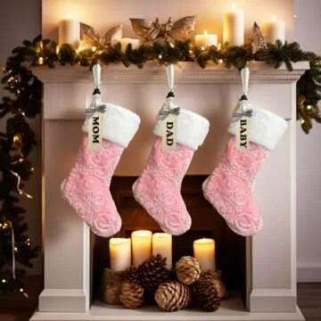 AISENO 3Pack 19 Inch Sequin Faux Fur Christmas Stockings Sequin Snowflake Hanging Ornaments Candy Gift Bags for Christmas Decorations Pink